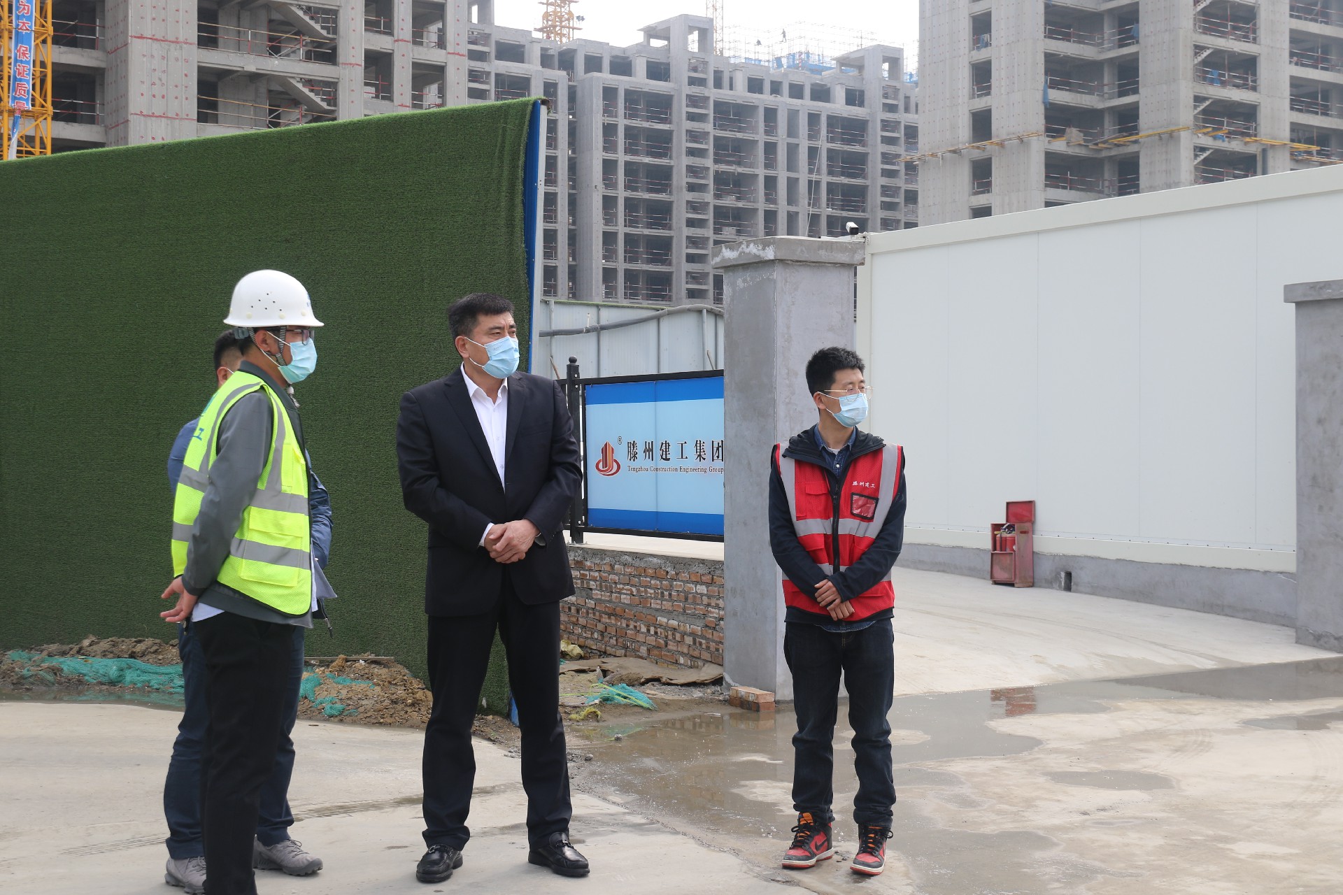 3月30日,集團黨委書記、董事長蔡成奎一行,深入到各施工現場,實地督導疫情防控工作落實情況。他強調,各項目部要深入學習貫徹習近平總書記關于疫情防控的重要指示精神,不折不扣落實我市疫情防控最新部署要求,查漏補缺,織密扎牢疫情防控網。集團辦公室主任趙勇跟隨督導活動。